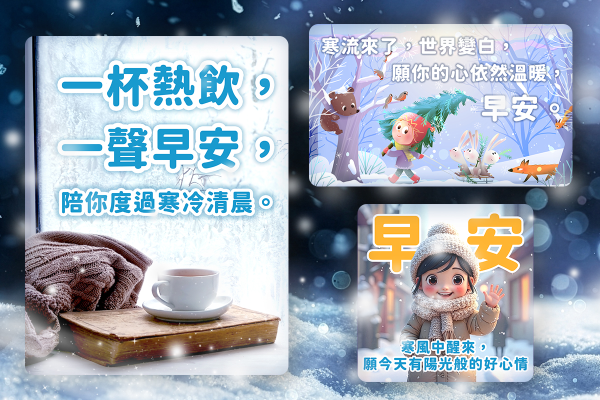 本文將教你如何使用免費手機 App「相片大師」,親手設計一張專屬於寒流季節的早安問候圖;不論是想加上禦寒叮嚀、溫暖祝福,或搭配冬季感十足的背景素材,都能輕鬆完成。如果你想直接下載免費的現成早安圖範本,這篇文章也已幫你準備好了☃️