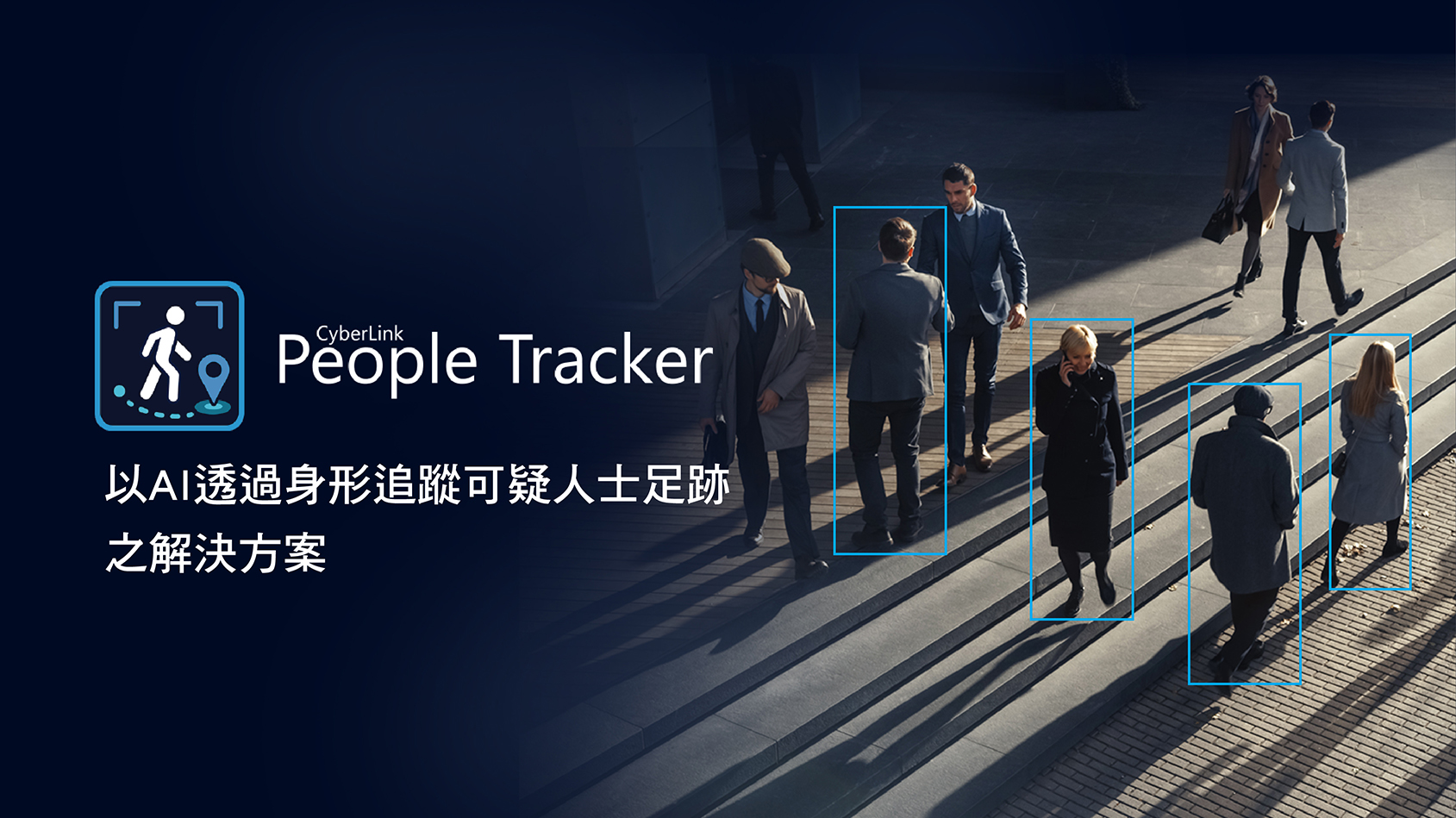 People Tracker 是一項人員追蹤解決方案,利用AI即時分析與搜尋監控影像,快速查找特定人物的出入足跡。無須人臉,即可透過行人的衣著、性別、年齡等條件或畫面中的身形影像、輕易搜尋特定人物。