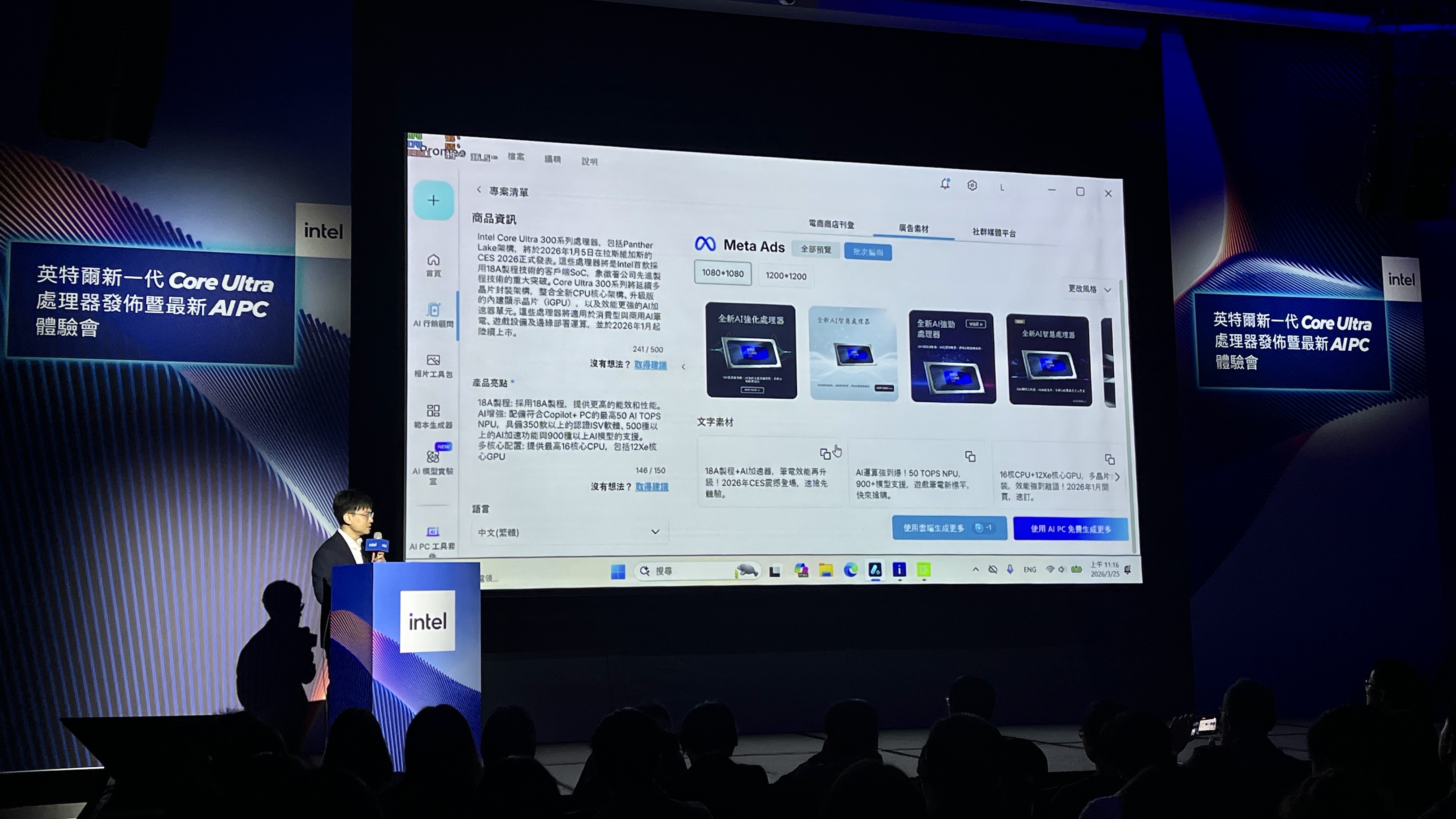 在 Intel 最新平台的加速支援下,Promeo 在電商行銷領域帶來重大躍進。結合VLM技術, AI 行銷顧問(AI Marketing Advisor),實現從概念發想、策略規劃到內容產出的全流程一站式行銷解決方案,用戶僅需上傳一張產品照片,系統即可透過 AI 辨識,自動生成符合各電商與社群平台規格的專業商品圖、廣告素材與文字內容。隨著與 Panther Lake 平台的深度整合,Promeo 在視覺內容分析的整體效能顯著提升達 1.6 倍,大幅加速行銷活動的生成、調整與跨平台系統化及格式化,使行銷團隊能更快速更新產品列表、製作行銷素材,並持續優化視覺內容,全面加速行銷效率與創作靈活性。